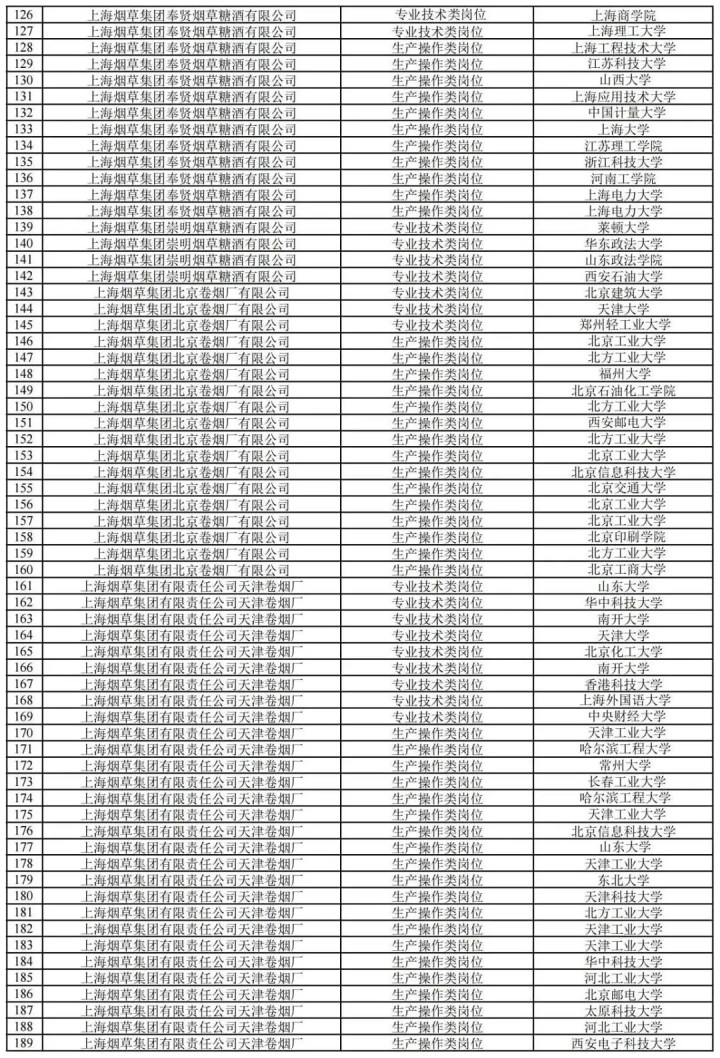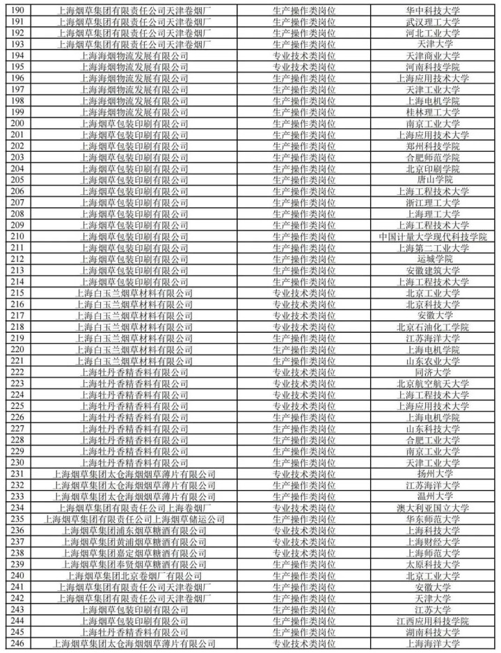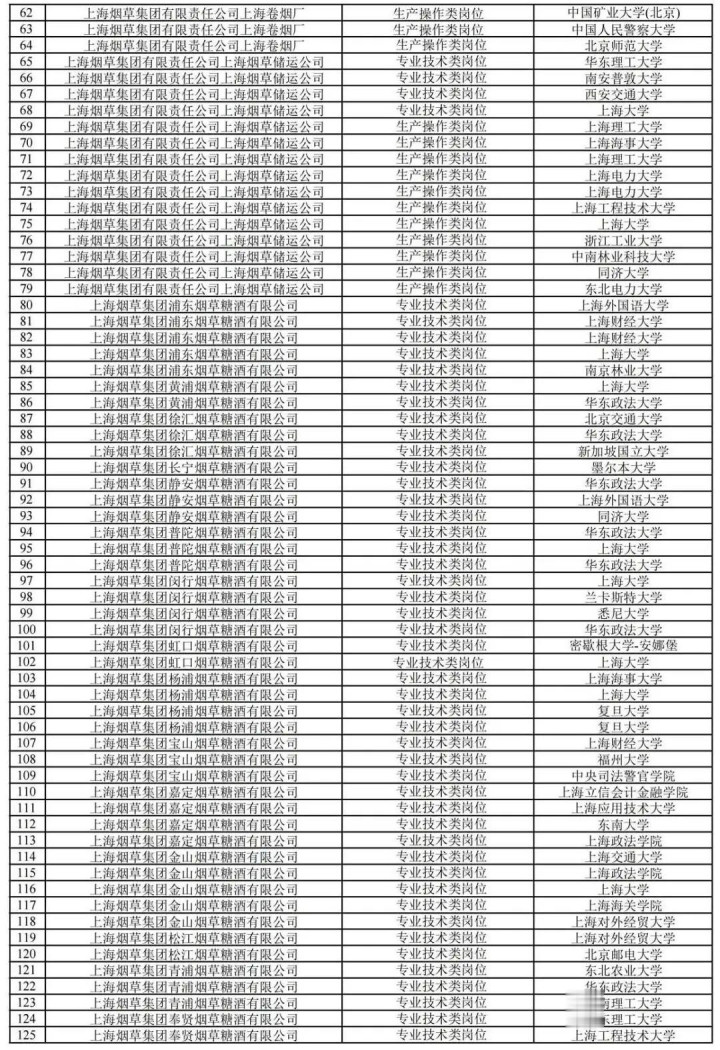 上海烟草各地卷烟厂生产操作类岗位,大部分仍然是普通院校毕业生,但是仍然有部分985高校毕业生选择,比如西安交通大学、山东大学等。具体如下: